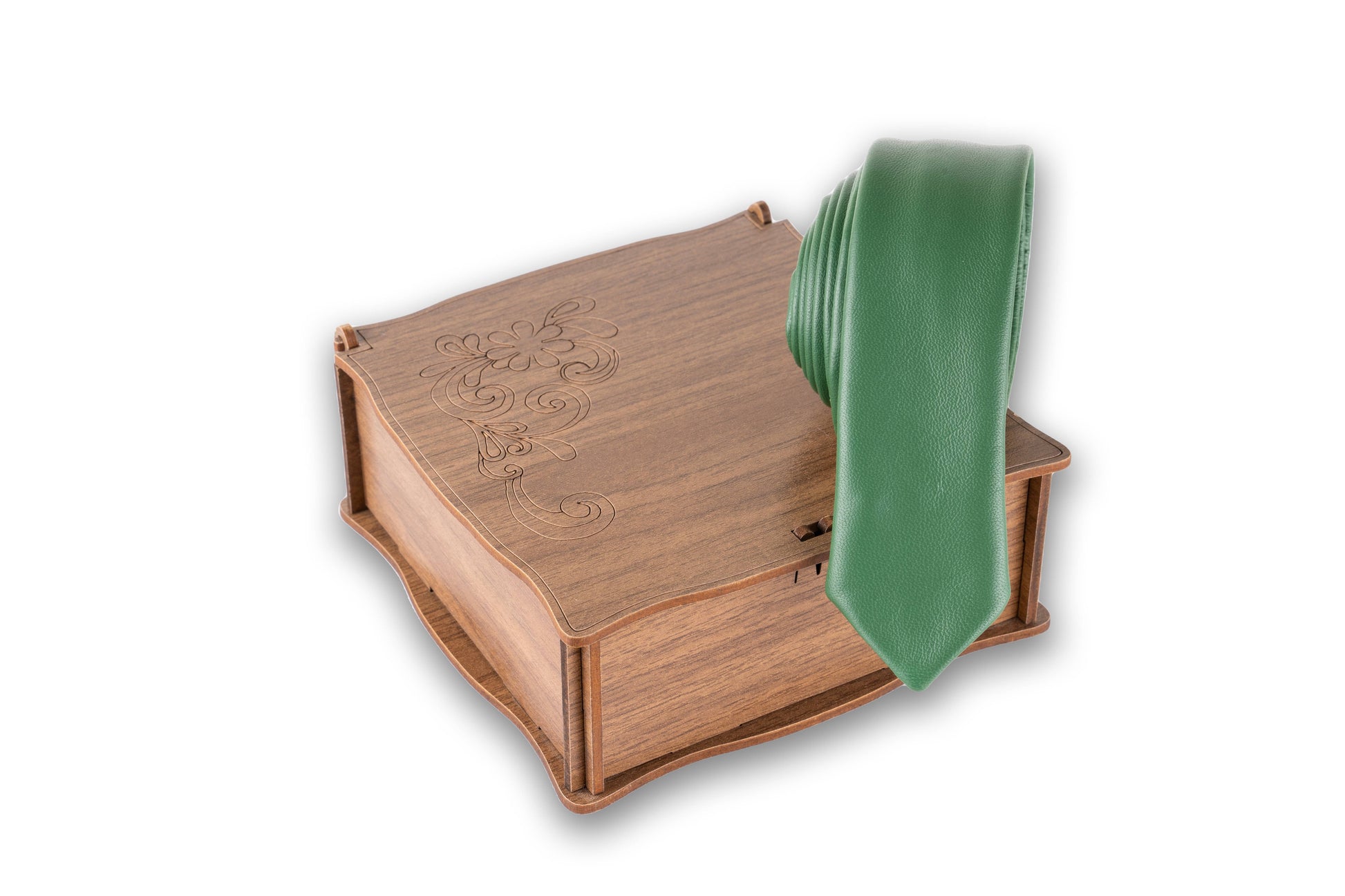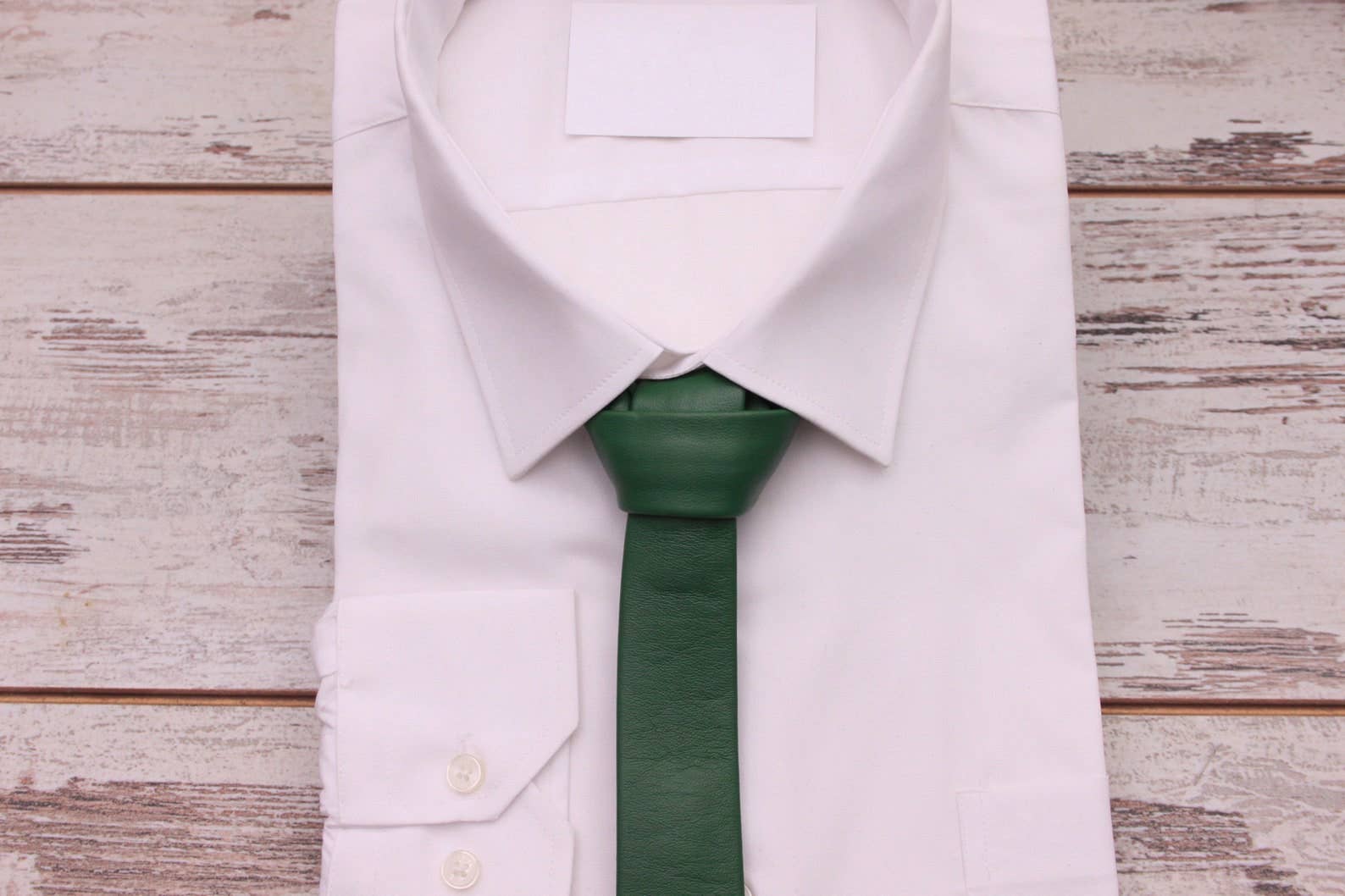 Green Soft Genuine Leather Skinny Necktie – Handmade & Stylish
