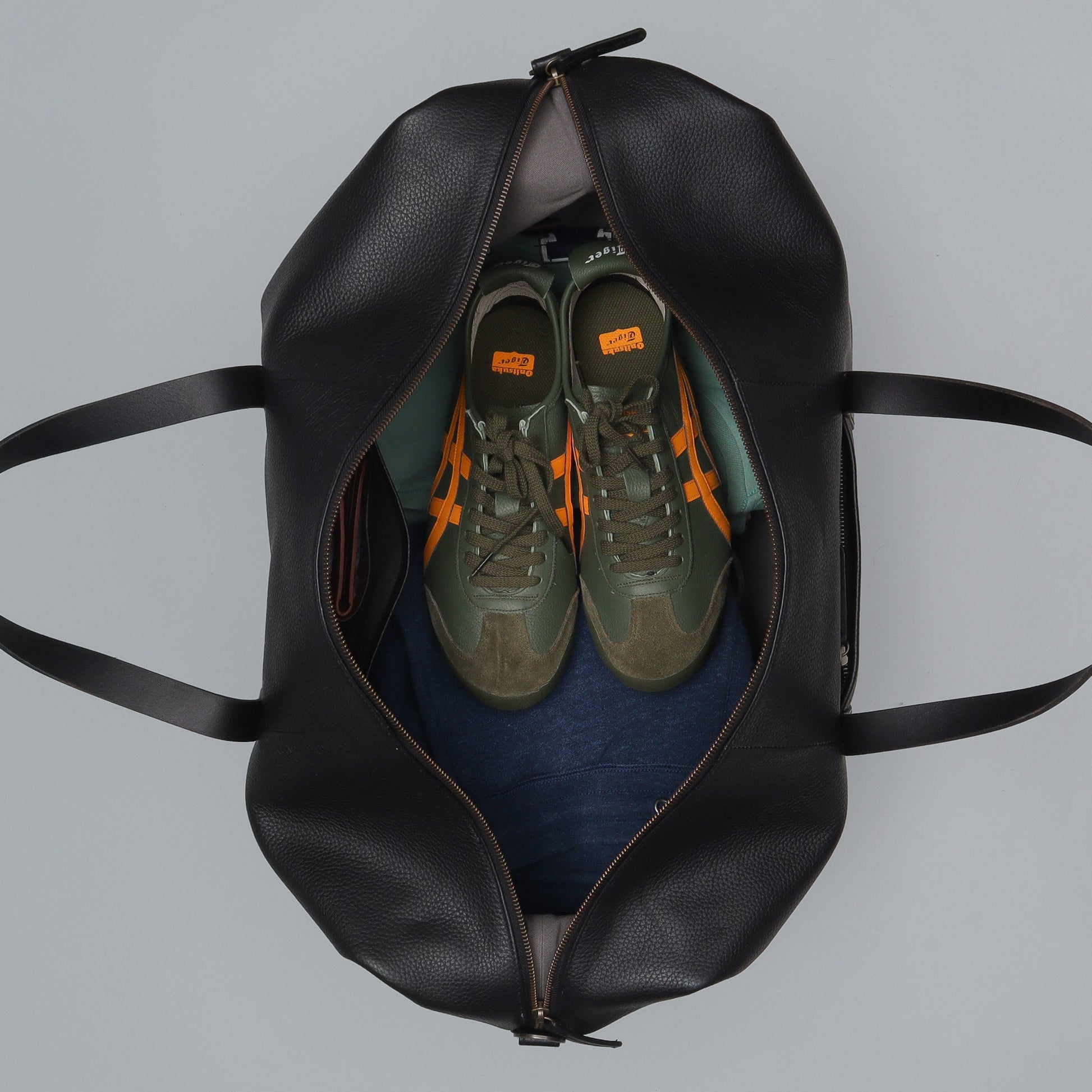Fitted with YKK brass zippers and antique brass hardware